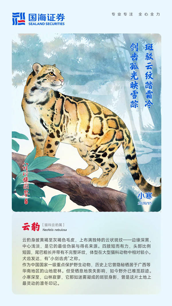 小寒虽寒,万物静藏。愿你我在这岁寒时节,亦能如云豹般——心有山林,独行有光。
